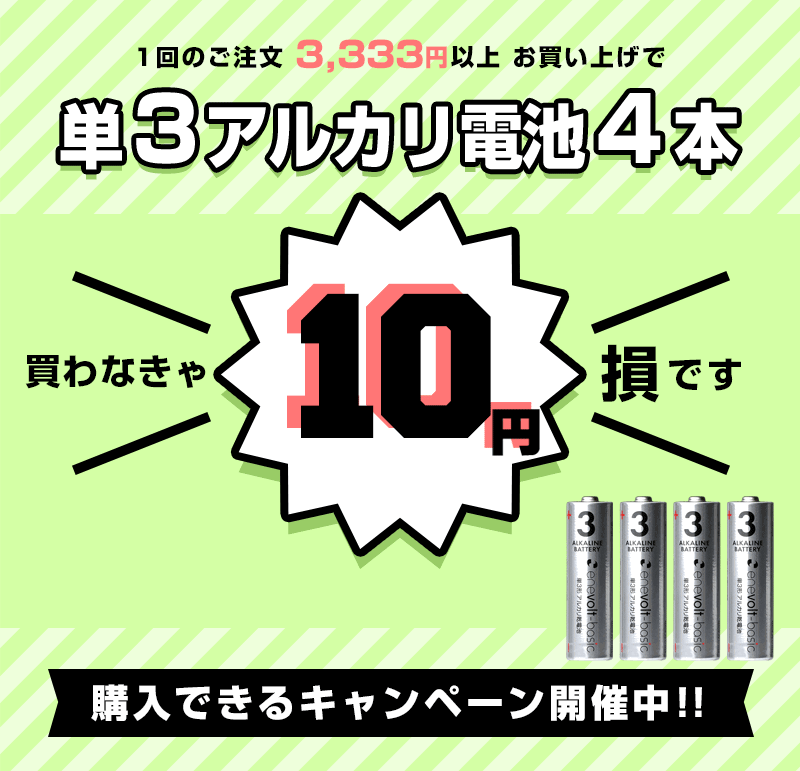 【2019年9月登録】 商品名: 【3,333円以上のご注文で10円キャンペーン】送料無料 アルカリ乾電池 単3 4本 単3電池 アルカリ 単3乾電池 アルカリ電池 電池 乾電池 セット 単三電池 単三 単3形 エネボルト Enevolt basic おすすめ 防災対策 台風対策 停電対策 【必ずご確認ください】 ★
