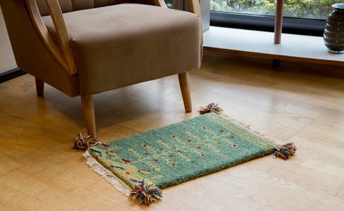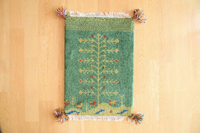 ギャッベ イラン製玄関マット 90×60cm グリーン
