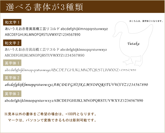 (選択のない書体をご希望の場合は+100円頂戴いたします。