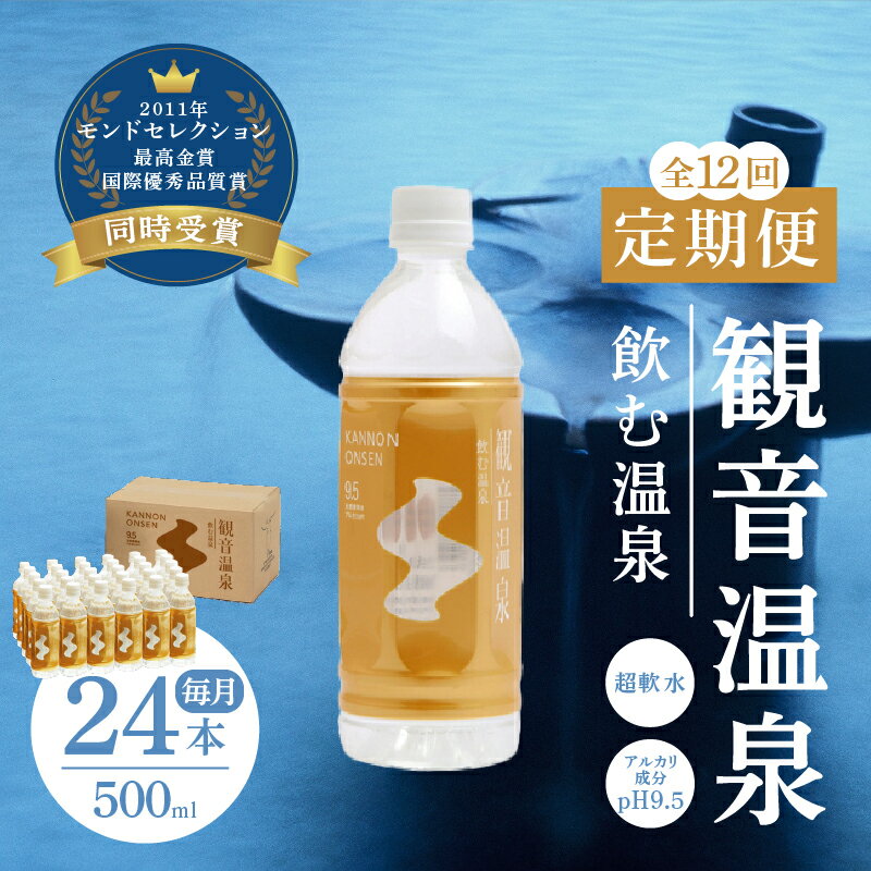 【ふるさと納税】 温泉水 定期便 水 500ml 軟水 シリカ ミネラル 化粧水 1年間 毎月 (12回)24本 1ケース 飲む温泉水 観音温泉