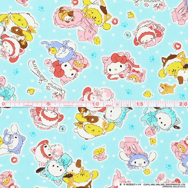 [数量5個から承ります]サンリオキャラクターズ こねこねこ柄 オックス生地 約110cm幅×10cm単位計り売り【メーカー在庫限り】| SANRIO サンリオ 猫 かわいい コットン プリント 通園 通学 入園 入学 レッスンバッグ シューズバッグ キッズ 手芸 手作り ハンドメイド