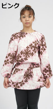 トップページ >> スモック&割烹着エプロン >> プルメリアスモックエプロン フロント バック 胸元 腰 袖口 ポケット ■素材・綿100%。