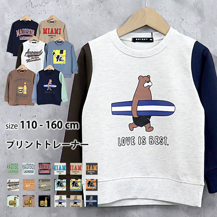 キッズ トレーナー スニーカー&ハンバーガー アメカジトレーナー 子供服 プリント スウェット スエット 男の子 女の子 ジュニア こども服 SHISKY シスキー 韓国ファッション 110cm 120cm 130cm 140cm 150cm 160cm