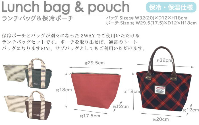 ■ランチバッグと保冷ポーチのセット 保冷ポーチとバッグが別々になった2WAYでご使用いただけるランチバッグセットです。
