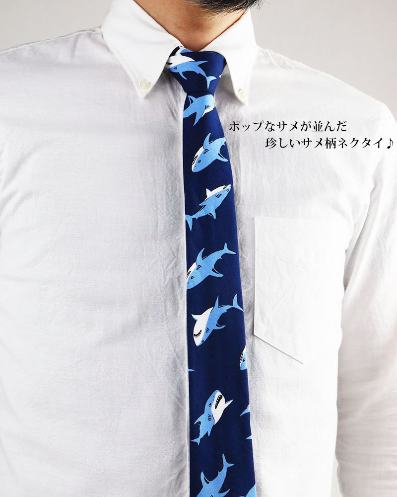 サメ柄 ネクタイ 日本製 6cm幅 細め ナロータイ 紳士 メンズ シャーク 鮫柄 ビジネス ユニフォーム スリムタイ ネクタイ