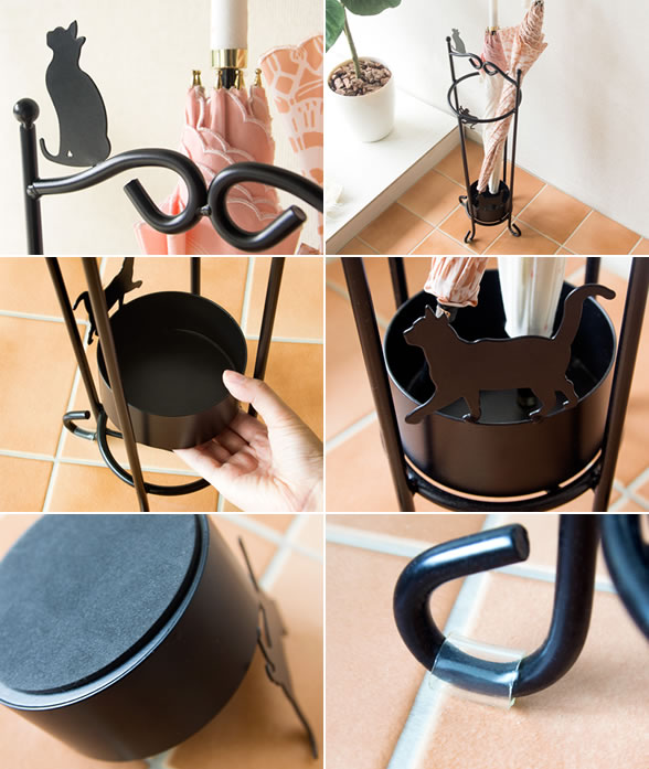 送料無料 アンブレラスタンド スリム 黒猫 猫脚 コンパクト 傘立て アイアン アンブレララック 玄関 傘たて カサ立て 玄関収納 水受けのトレイ付き レインスタンド 高級感 スチール 可愛い かわいい シンプル 北欧 おしゃれ
