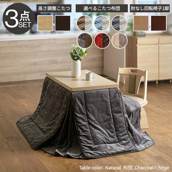 【セット構成】こたつ本体x1台/こたつ布団x1枚/回転椅子x1台 【布団バリエーション】しじら織り・レンガxブラウン・ベージュxグレー 【仕様】 ■こたつ本体 天板:繊維板(転写プリント) 脚部:天然木(ラバーウッド) 薄型石英管ヒーター(500W・中間スイッチ式) コード長さ:約3m ◎一部組立(脚部取付) ■こたつ布団 [しじら]表地:綿100% 裏地:アクリル100% 中綿:ポリエステル100% [レンガ・ベージュ]表地・裏地:ポリエステル100%(はっ水フランネル) 中綿:ポリエステル100% ■回転椅子 フレーム:天然木(アカシア) 座面:合成皮革 ◎一部組立(脚部取付) 【サイズ】 ■こたつ本体 幅90x奥行60x高さ45/50/55/60/65/70cm(継ぎ脚10cmx2個 5cmx1個)・約17kg ■こたつ布団 [しじら]250x220cm・中綿約950g [レンガ・ベージュ]252x222cm・中綿約440g ■回転椅子 幅46.5x奥行49x高さ75(70)cm・約9kg 株式会社ナカムラ(I-3300255)こたつ単品 >90x60 >80x80 >105x80 >135x80 >150x90 こたつ+選べるこたつ布団セット >90x60 >80x80 >105x80 >135x80 >150x90 こたつ+選べるこたつ布団+回転椅子セット >90x60 >80x80 >105x80 >135x80 >150x90 こたつ+選べるこたつ布団+肘付き回転椅子セット >90x60 >80x80 >105x80 >135x80 >150x90 こたつ掛け布団単品(しじら織り) >90x60 >80x80 >105x80 >135x80 >150x90 こたつ掛け布団単品(はっ水リバーシブル) >90x60 >80x80 >105x80 >135x80 >150x90 肘のない回転椅子 >単品 肘付き回転椅子 >単品 >組立設置サービスのご購入 >引取り(解体)サービスのご購入