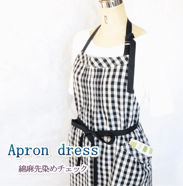 エプロン ドレス 大きいサイズ おしゃれ かわいい 母の日プレゼント 天然素材 リネン コットンリネン ギンガム ギフト 大人