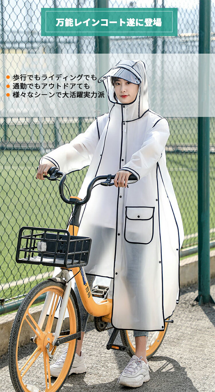 商品概要 商品名 ・レインコート 商品説明 ・透明な二重つば:飛沫防止、風よけ、雨よけ防止、雪よけ防止などの機能があります。
