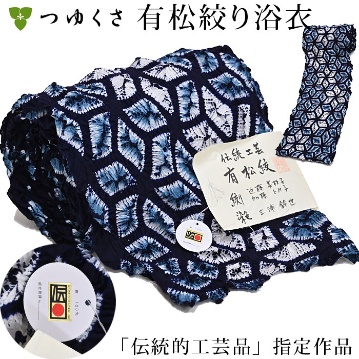 ※お仕立て代込※浴衣 有松絞り 〔全行程国産〕伝統的工芸品 国指定 伝産マーク証紙付 亀甲 巻き上げ絞り 縫い絞り ブルー 紺 | 反物からお仕立 | S M L LL(小さいサイズ~大きいサイズ 高級 本物 逸品 純国産 日本製 つゆくさ 有松 鳴海絞り浴衣〔反物〕