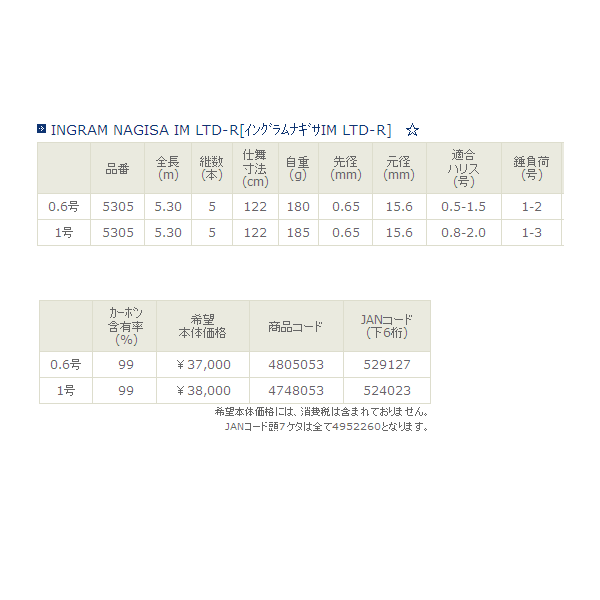 ■高強度タフトップ穂先 ■オールチタンフレームSIC、IM&LGトップガイド ■INSリールシート(滑り防止処理有) ■IDTCトップカバー ■滑りにくく握り易いEVAグリップ仕様 ■ベタ付き防止処理塗装(元上〜♯2) ■全節ガイド合わせ用ライン付 ■オールレッド特別塗装仕様(LTD-Rモデル) ☆