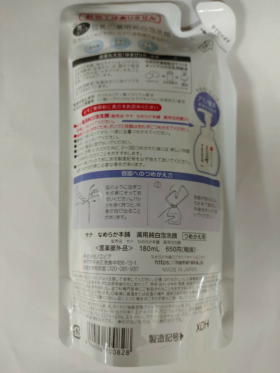 常盤薬品 サナ なめらか本舗 豆乳イソフラボン 薬用 泡 洗顔 つめかえ用 180ml