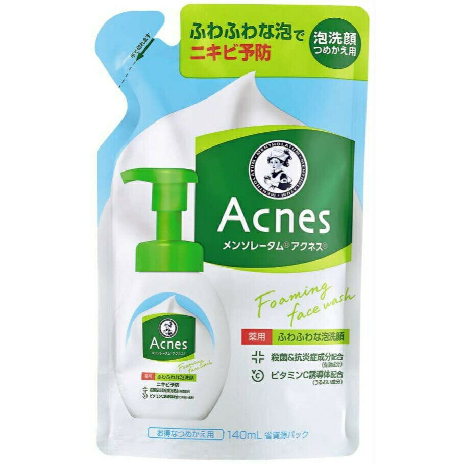 【買い回り 送料無料】メンソレータム アクネス ニキビ予防薬用ふわふわ泡洗顔 詰替用 140mL×4袋セット コスメ