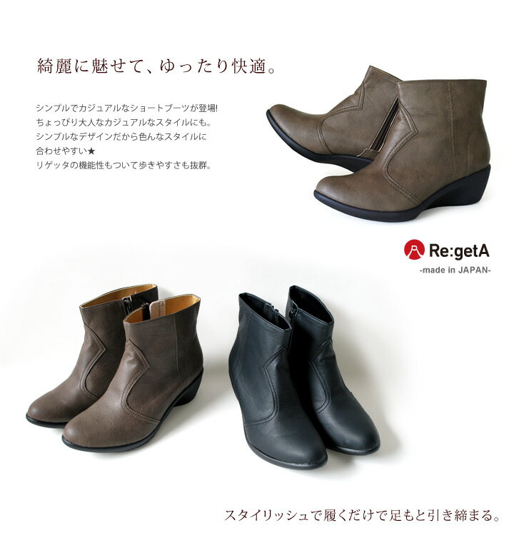 Re:getA -リゲッタ-SCR-1954 ステッチデザイン ショートブーツ きれいめ ヒール