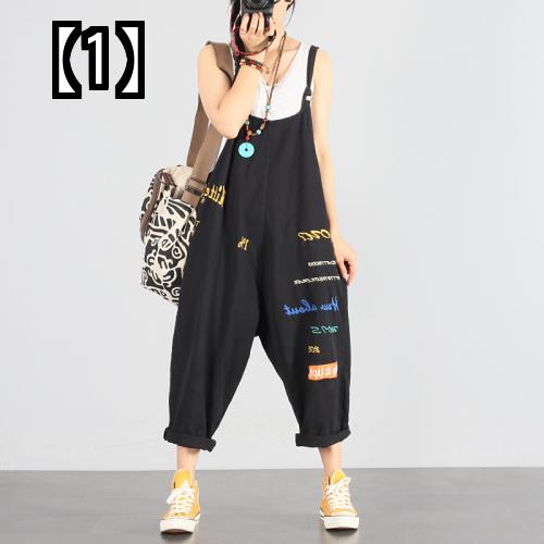 オーバーオール サロペット オールインワン レディース ツナギ つなぎ ストリート系 デニム ブラック 刺? ラージサイズ ルーズ サスペンダー ジャンプスーツ カジュアル